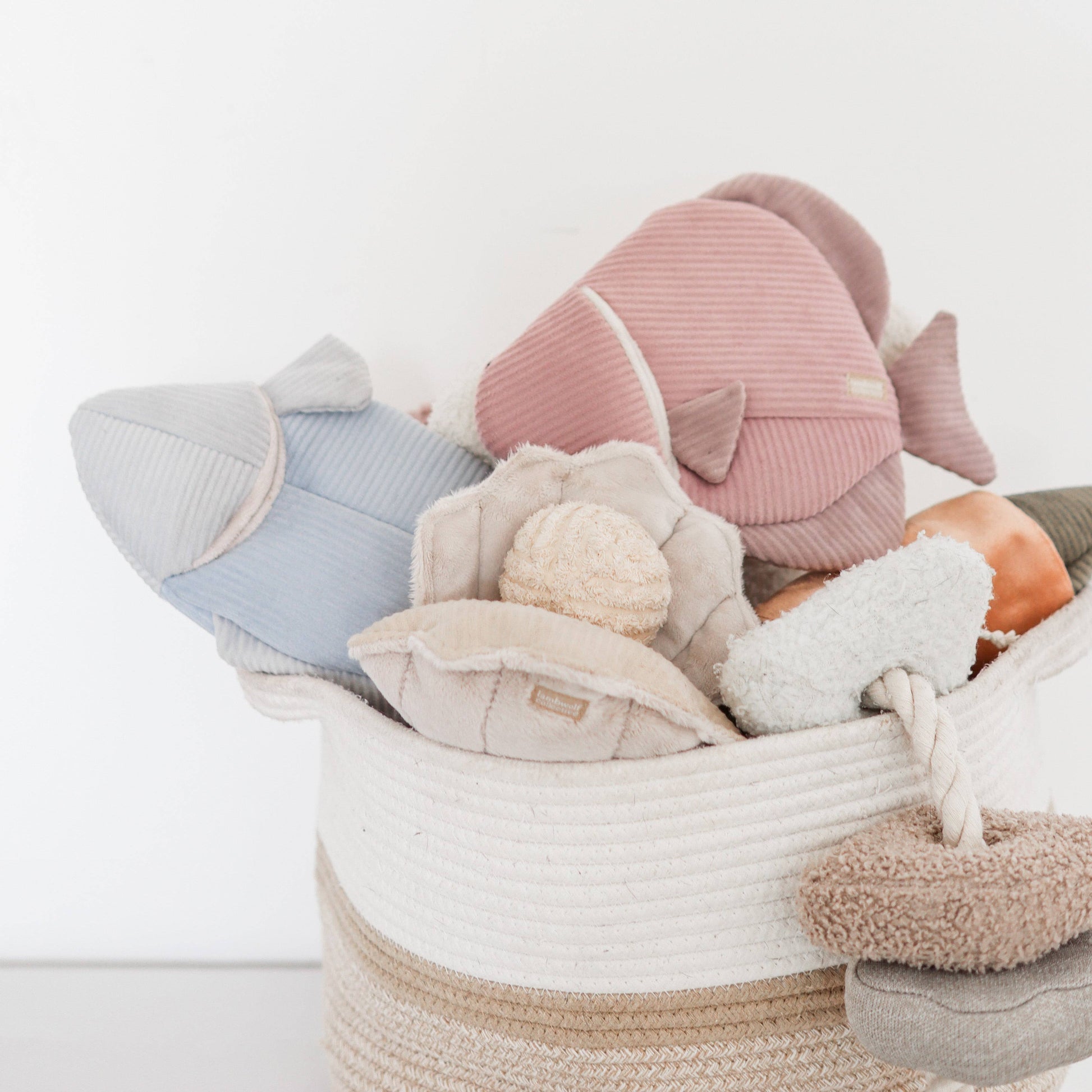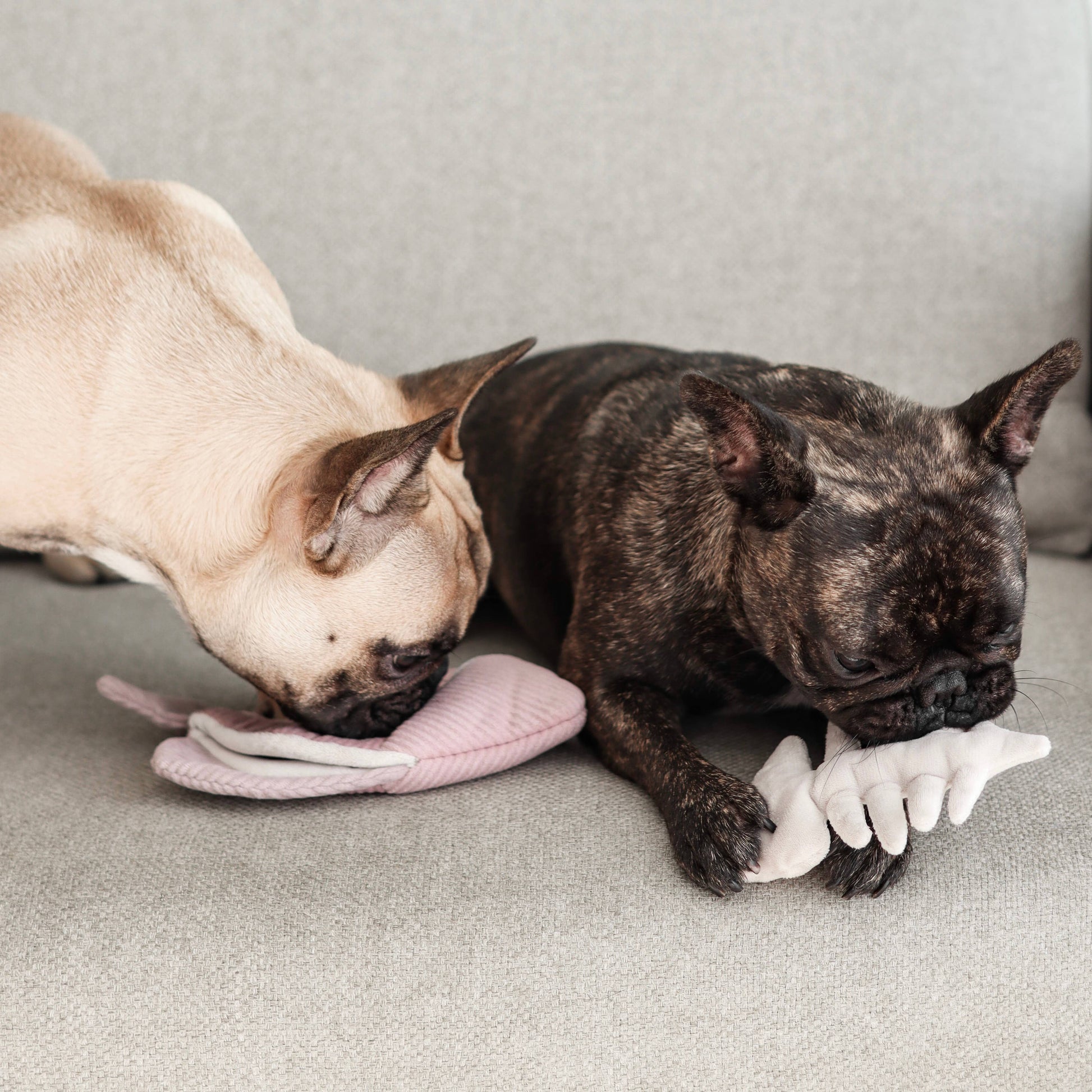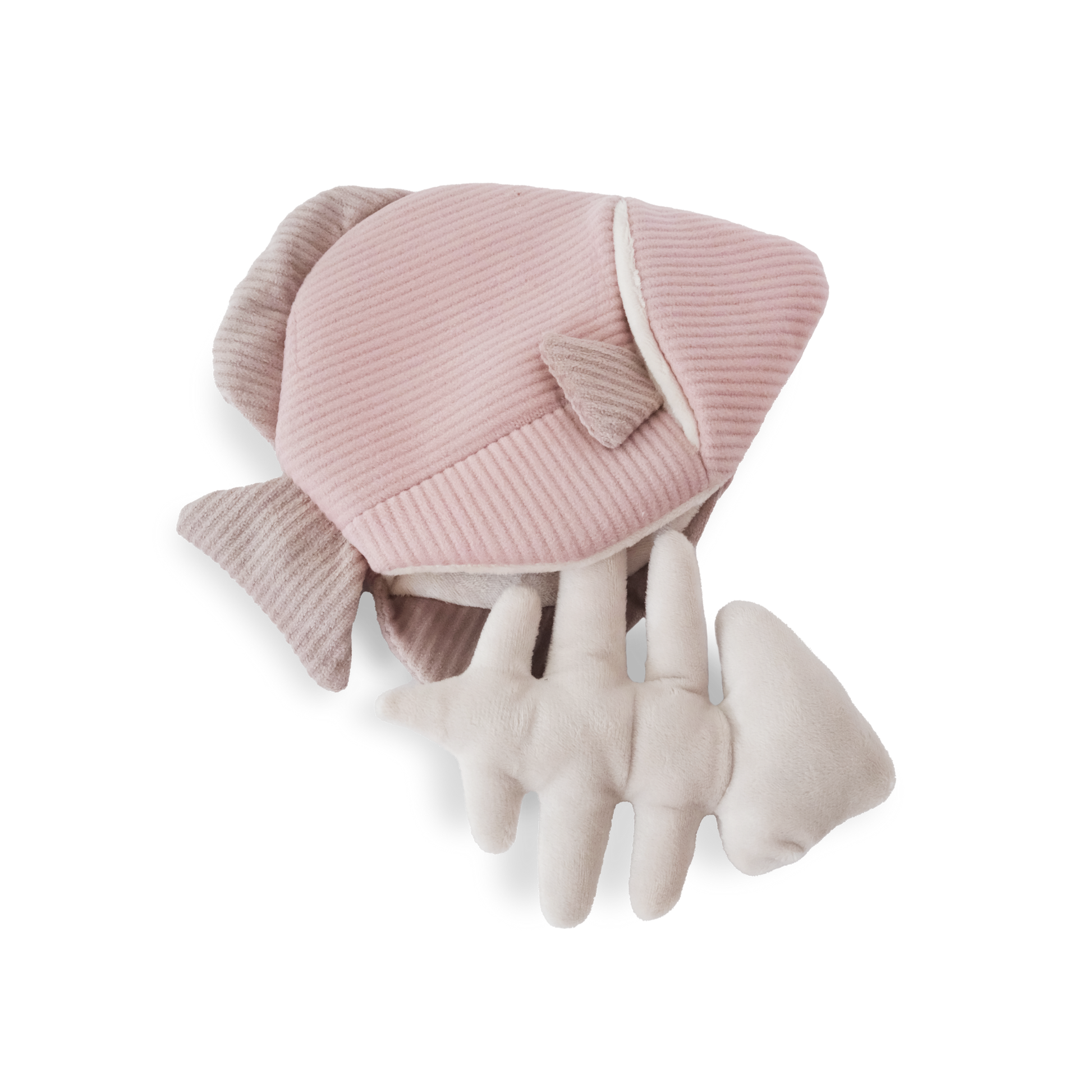 ANGEL FISH is a 2-in-1 burrow and snuffle enrichment play object. Inside is one large squeaky fishbone for chewing and all the fins crinkles! There are multiple pockets for you to hide treats in.
